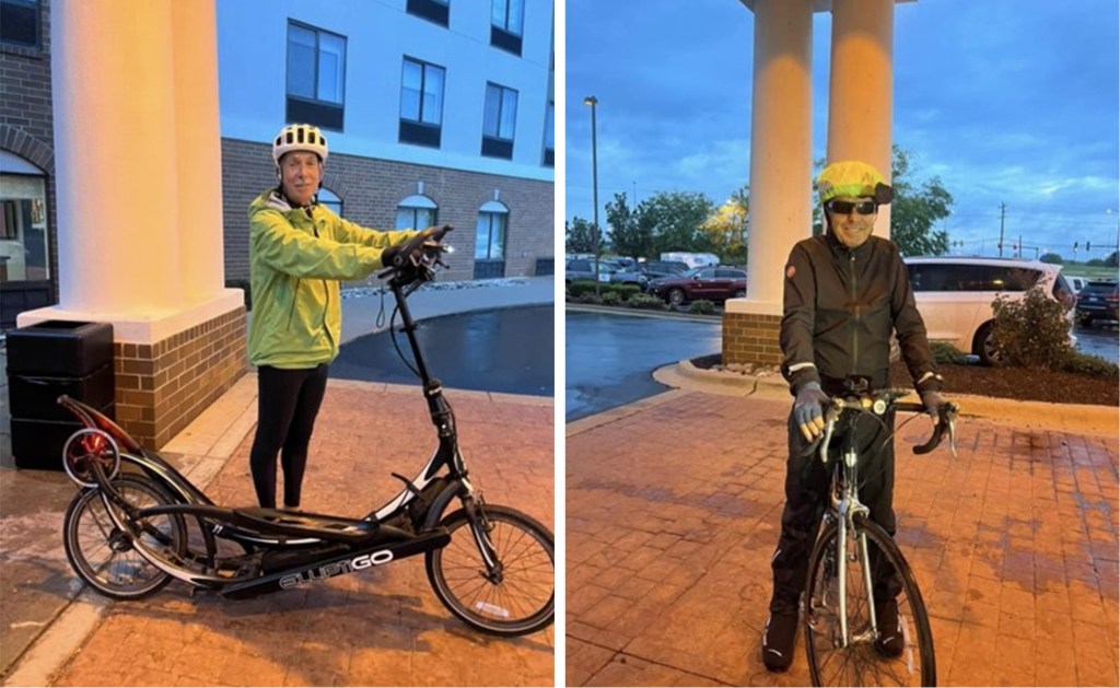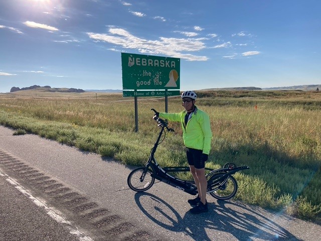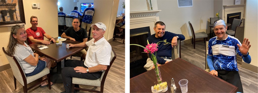 The riders all performed better in some conditions than others, and we all encouraged and challenged each other to keep going and catch up whenever we could. Doug was likely the strongest of us, as the ElliptiGO takes 30% more effort to ride than a regular bike. He just kept going and rarely stopped. And as the leader he had a lot of paperwork and correspondence to keep up on, especially on the rest days. Tes, our treasurer, was probably the fastest overall when he wanted to be, even uphill. He set some sort of land speed record one day trying to catch up to me – when I was actually several miles behind. Dave can climb slower and go faster downhill than any human I’ve seen, and thrives on heat. He was also the resident foodie, checking out every available eatery whenever we rolled into a town. Ron was working off some health issues here and there, but overcame them all and steadily improved every day. I was somewhere in the middle – I climbed pretty well on one bike and did better on downhill or flats on the other.