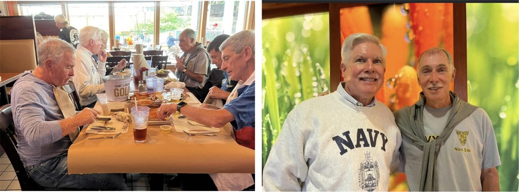 The accomplishment of our mission finally came home to me at the arrival in Annapolis and our Memorial Service the next day. As they played the slideshow roll call of our departed classmates whose names we carried on our jerseys, I found myself smiling at the familiar faces – sometimes with a tear in my eye, but mostly remembering those I knew well (or came to know better through our tributes) in happier times. It was indeed a happy event for me, and those memories should be a comfort and satisfaction to us all. The many widows and other loved ones I encountered said much the same thing. They really appreciated all we did and now know their departed ‘73ers are not forgotten. We hope that realization and connection may help to establish some sort of network among the survivors – that could be a lasting legacy and a model for others.